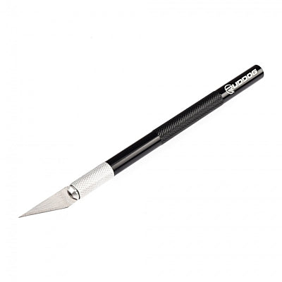 Every RC tool box needs a hobby knife. The Ruddog Hobby knife is a pencil-shape, economic alternative. It has a black aluminium handle with the Ruddog logo and a plastic protective cap. Five spare blades are included with the knife, and a convenient 10 pack of # 11 spare blades is available separately (RP-0528).